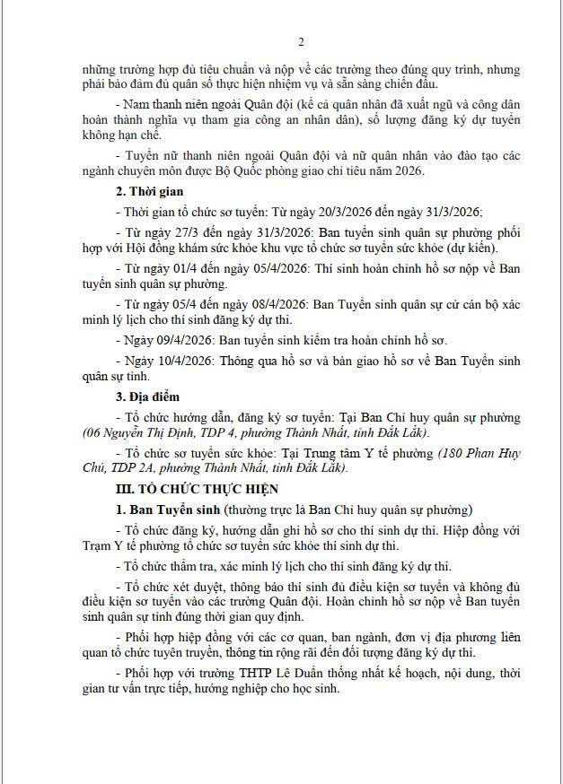 Kế hoạch Tuyển sinh Quân sự vào các Học viện, trường trong quân đội năm 2026